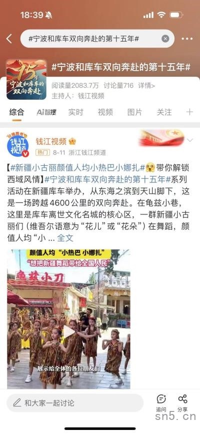 主话题#宁波和库车双向奔赴的第十五年#阅读量超2083万,获得浙江卫视、Z视介、美丽浙江、宁波发布等多家媒体、政务号转发。