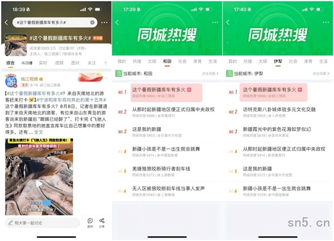 #这个暑假新疆库车有多火#、#新疆小古丽颜值人均小热巴小娜扎#登上全疆热搜第一位,阅读量合计超5100万。