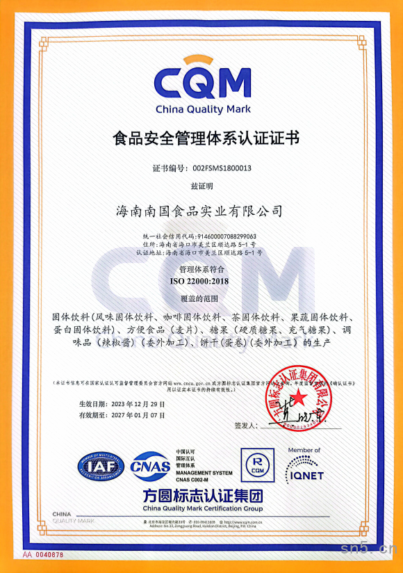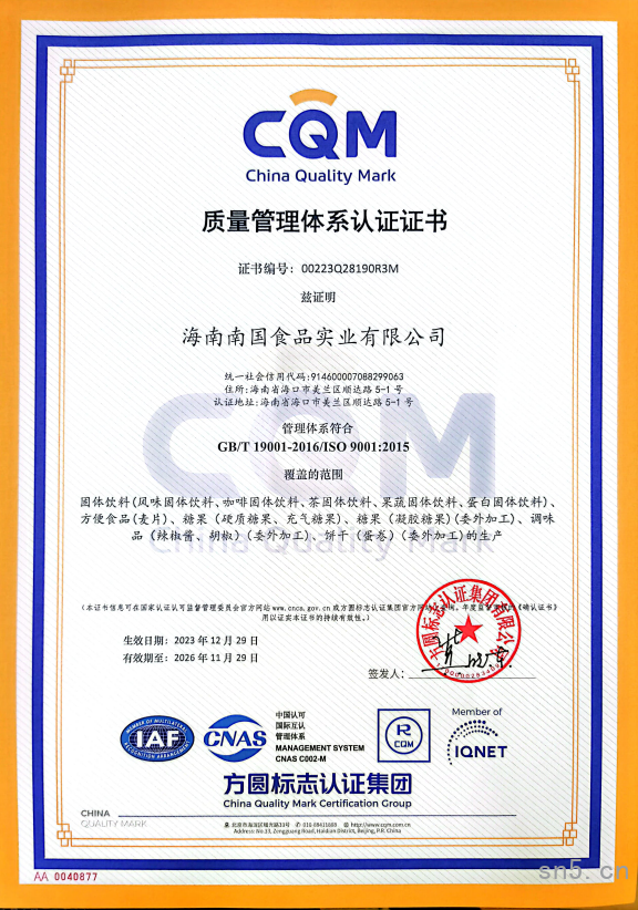 在生产环节,南国严格执行ISO9001质量管理体系、ISO22000食品安全管理体系和HACCP体系,实现从原料采购到成品出厂的全流程质量管控,确保每一款产品都符合高标准的安全要求。