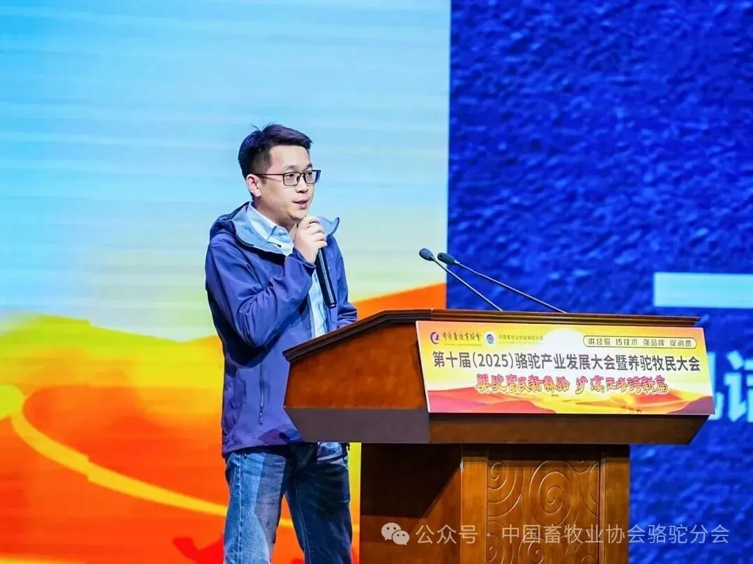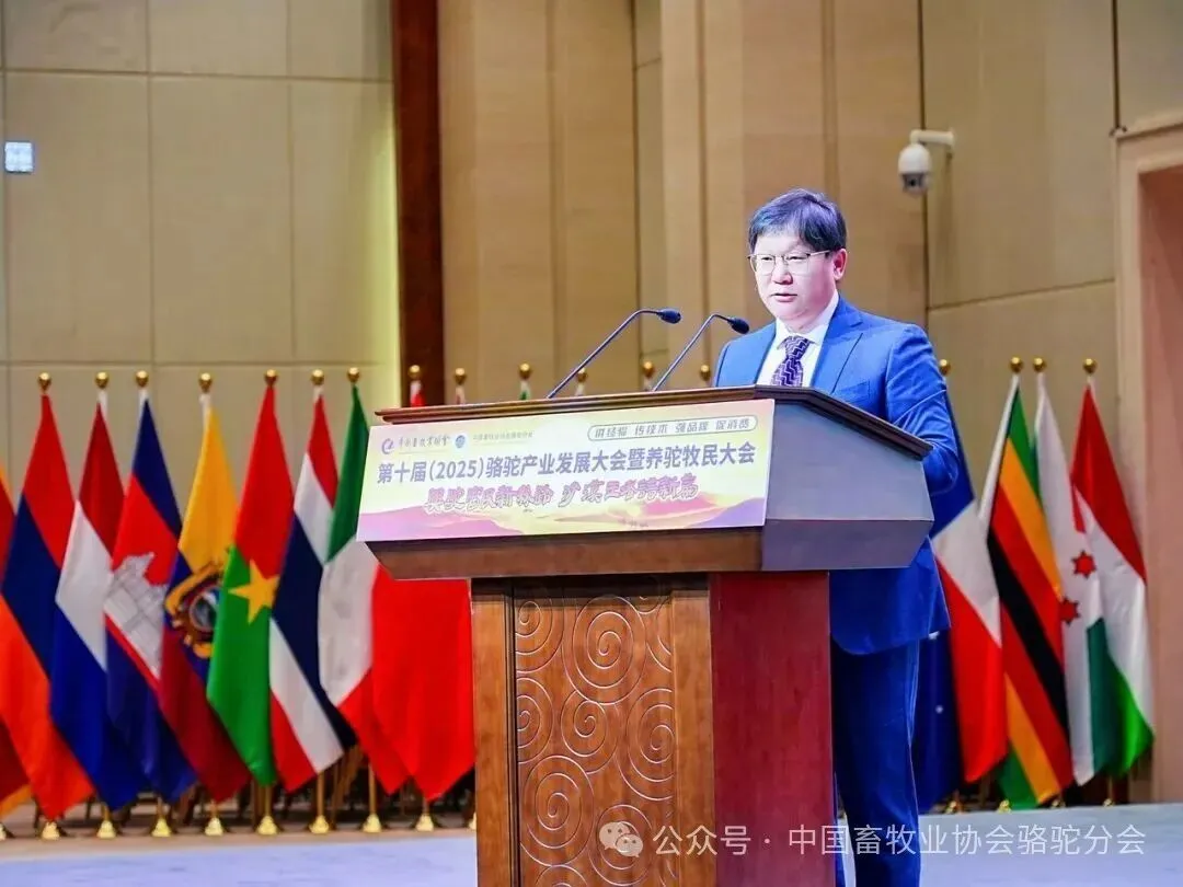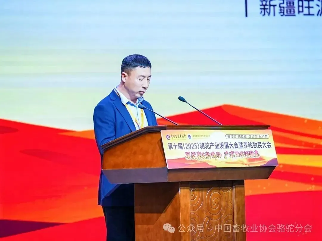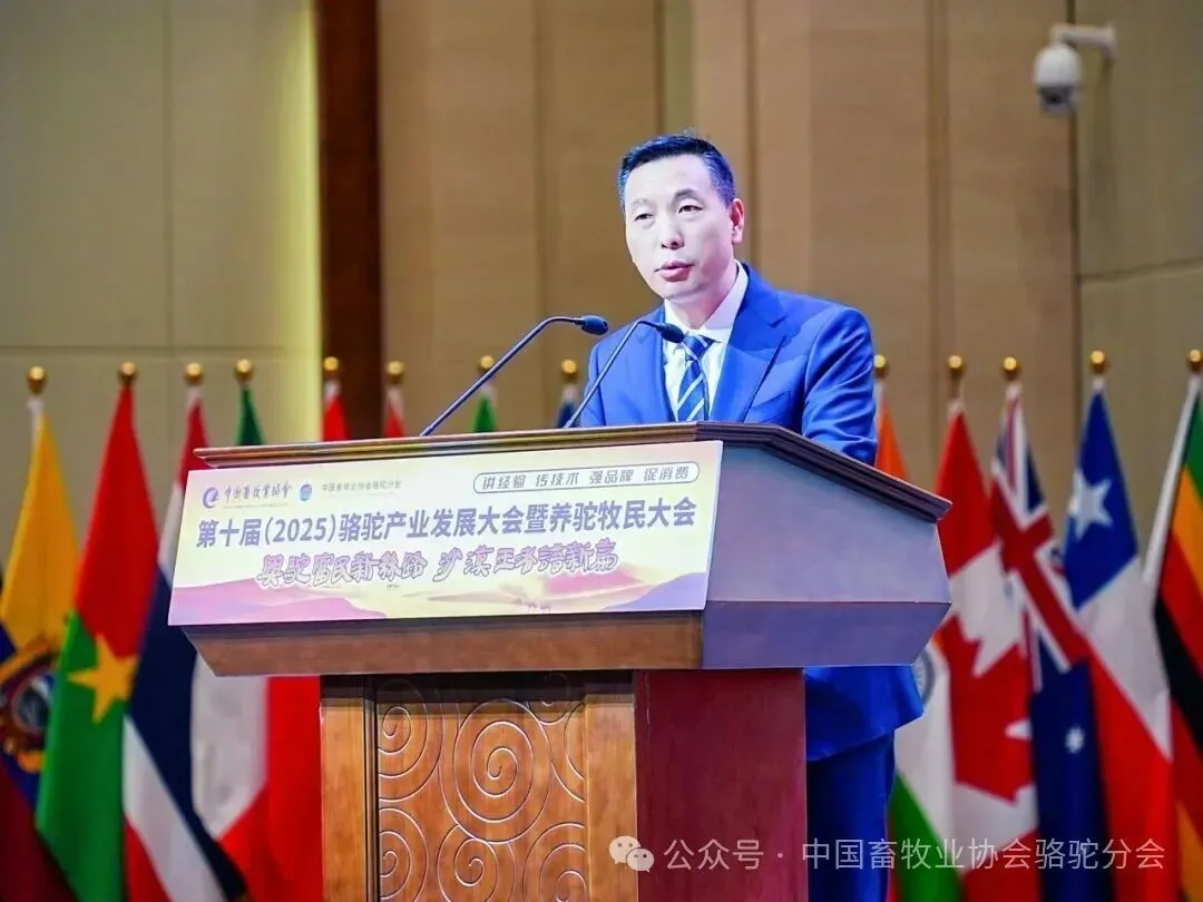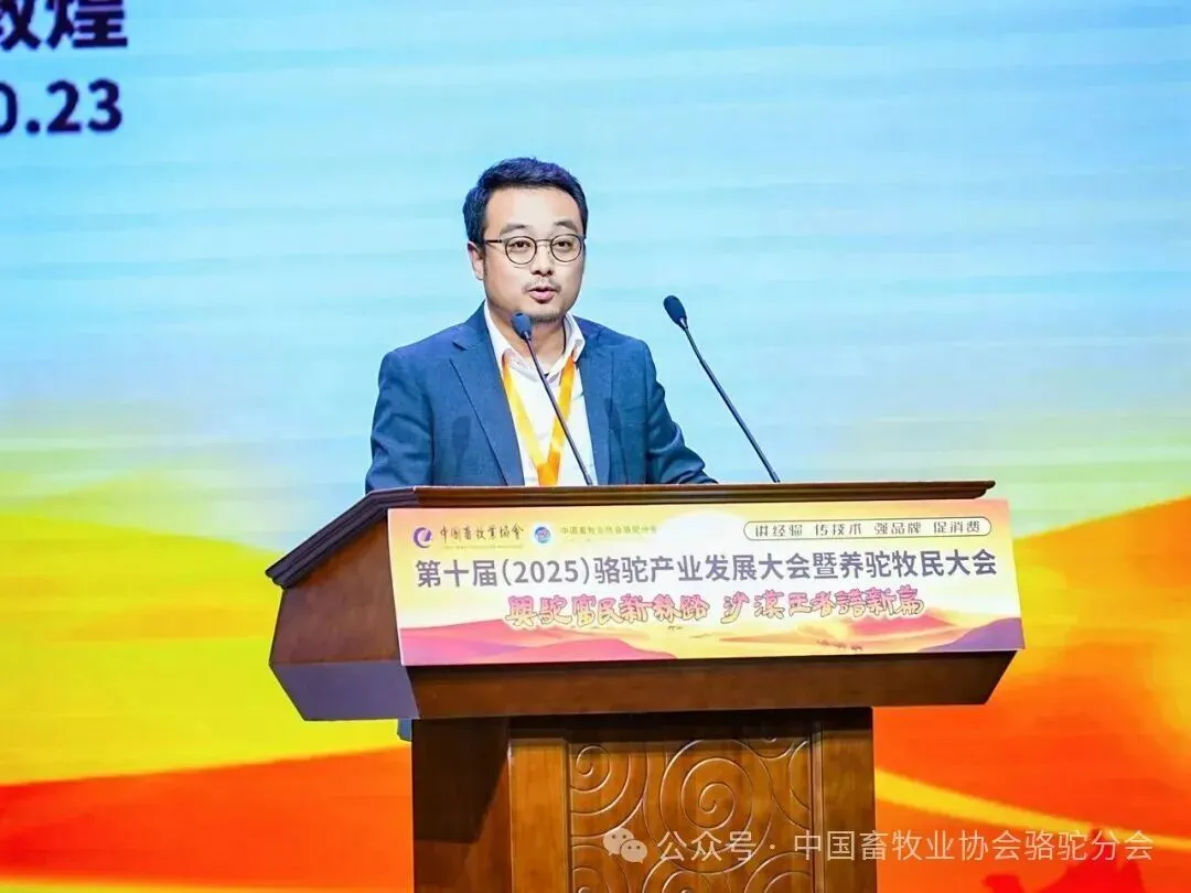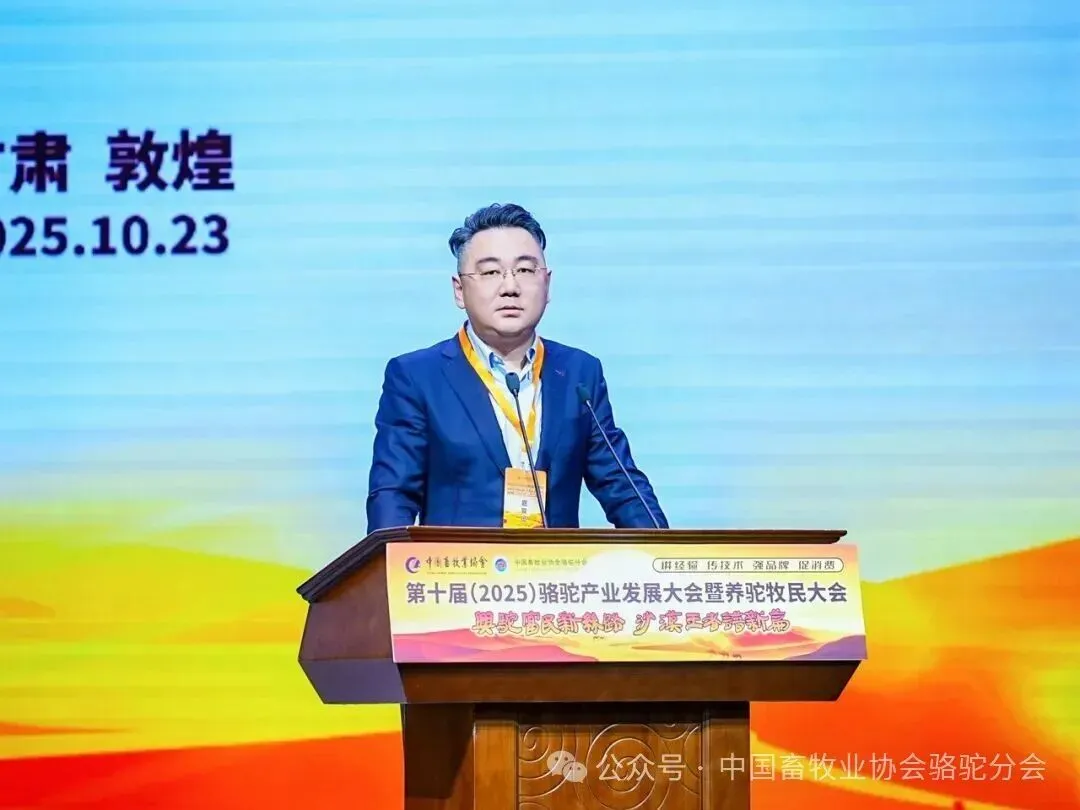 中国畜牧业协会会长蔡辉益致开幕辞。他表示:回顾骆驼产业发展历程,其已实现跨越式成长——存栏量从2009年的22万峰增至如今的58万峰,产业链更延伸覆盖高端食品、生物医药、时尚服饰、特色文旅等多个领域,已成为边疆牧民增收致富的支柱产业。面对产业发展新阶段,他强调需聚焦“科技驼业”“共富驼业”“人文驼业”三大方向,推动产业实现三大升级:从“技术应用”走“核心创造”,夯实自主创新竞争力;从“产业链”迈向“价值链”,让牧民更深度共享发展红利;从“卖产品”升级“卖文化”,挖掘产业精神内涵、拓展价值边界。