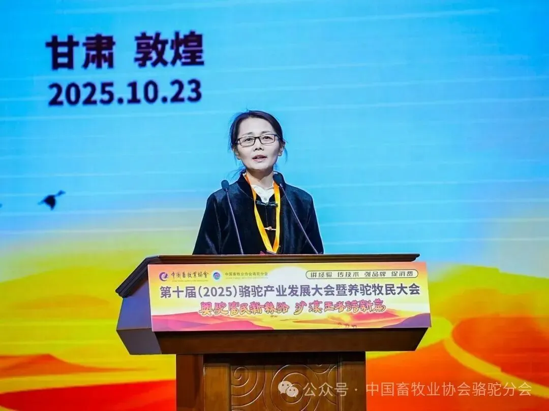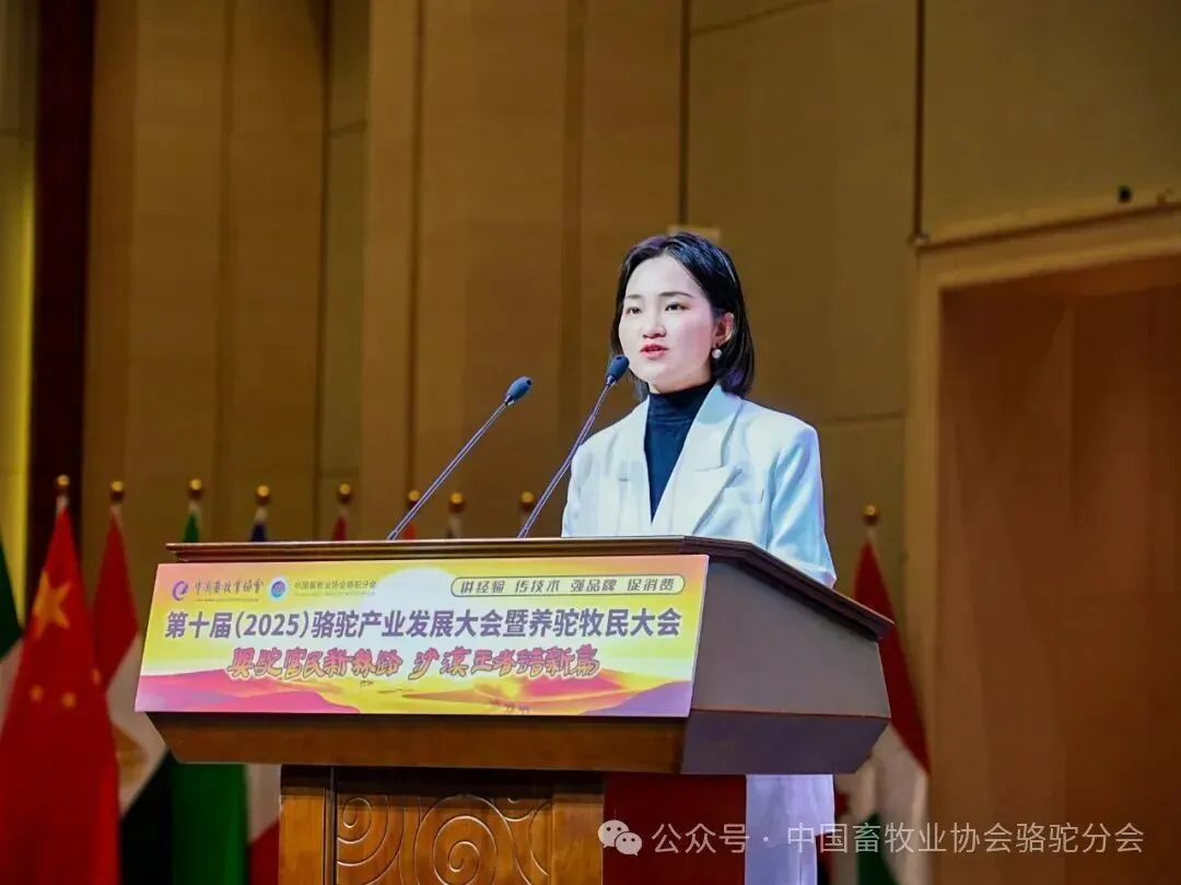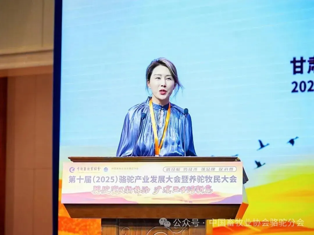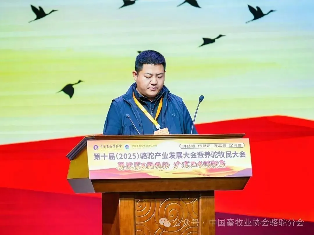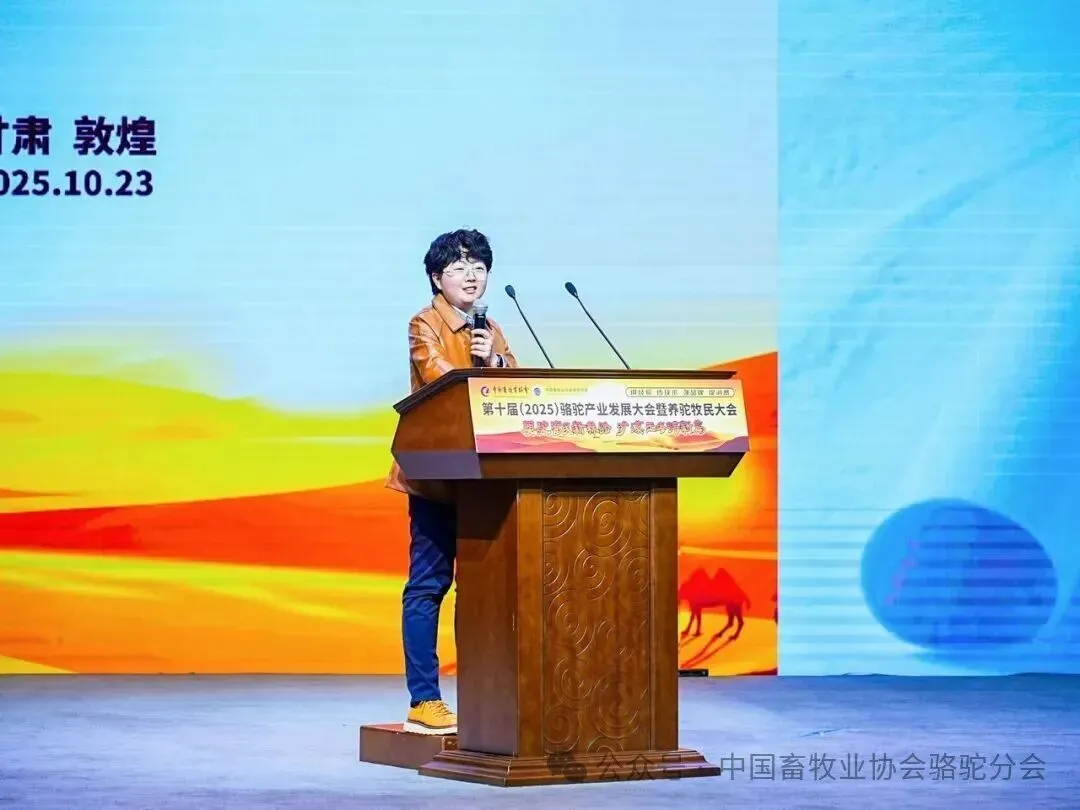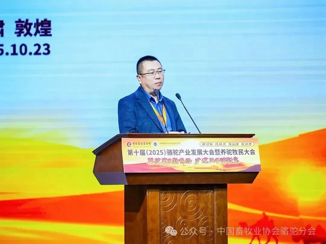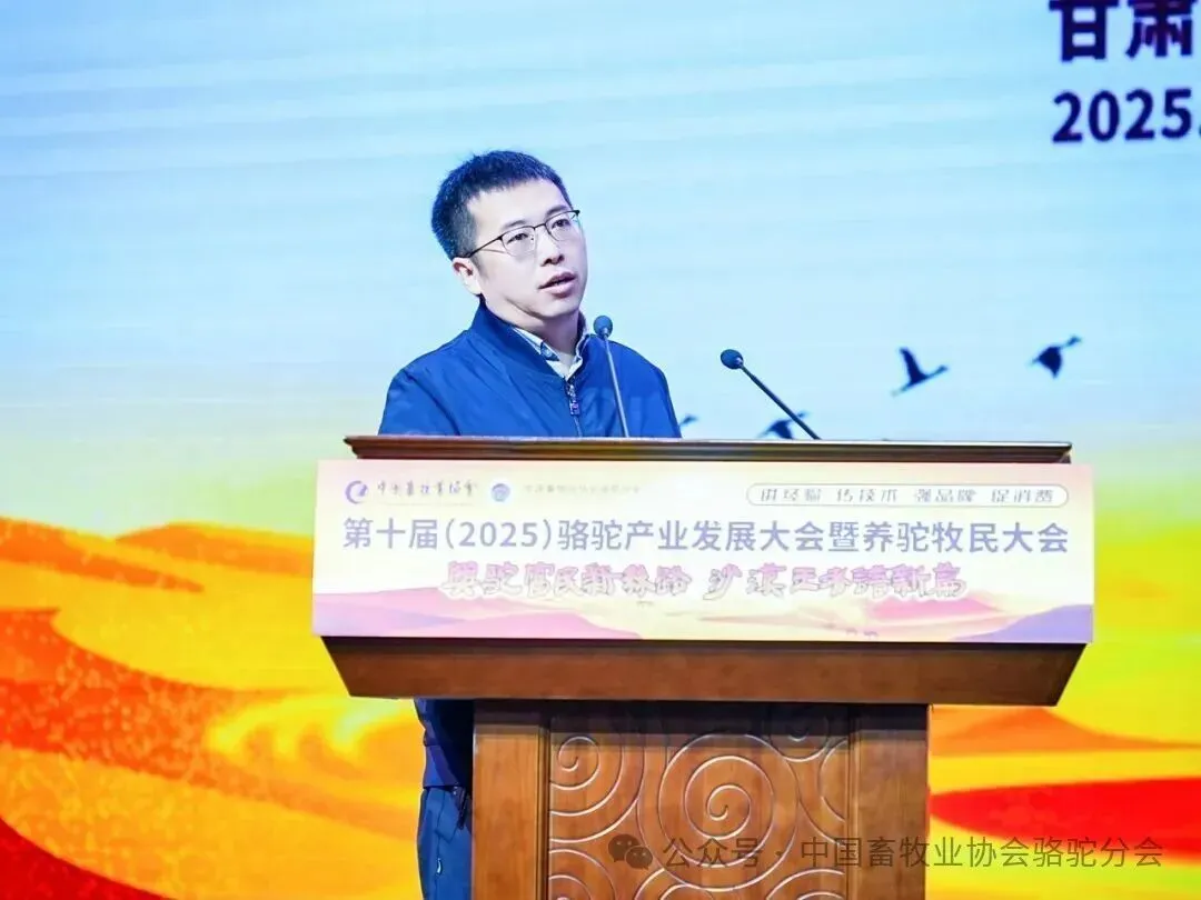中国畜牧业协会会长蔡辉益致开幕辞。他表示:回顾骆驼产业发展历程,其已实现跨越式成长——存栏量从2009年的22万峰增至如今的58万峰,产业链更延伸覆盖高端食品、生物医药、时尚服饰、特色文旅等多个领域,已成为边疆牧民增收致富的支柱产业。面对产业发展新阶段,他强调需聚焦“科技驼业”“共富驼业”“人文驼业”三大方向,推动产业实现三大升级:从“技术应用”走“核心创造”,夯实自主创新竞争力;从“产业链”迈向“价值链”,让牧民更深度共享发展红利;从“卖产品”升级“卖文化”,挖掘产业精神内涵、拓展价值边界。