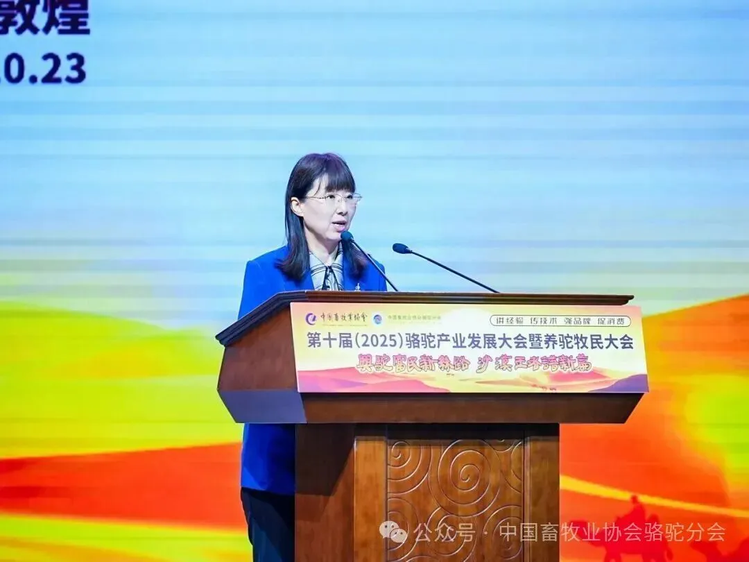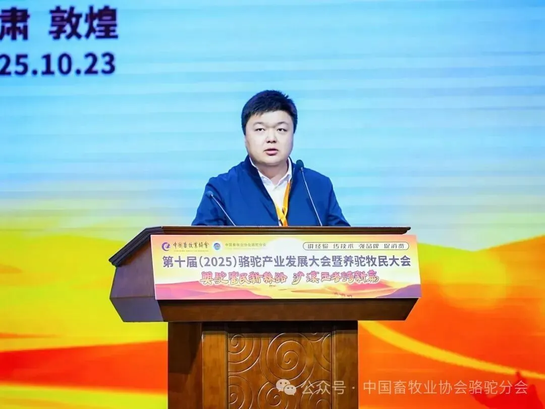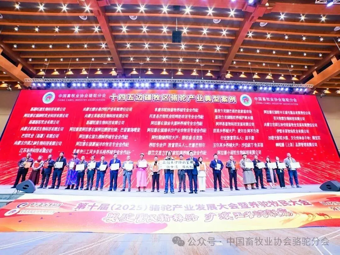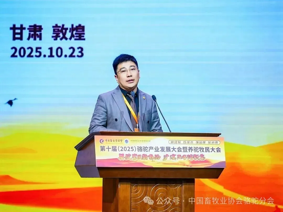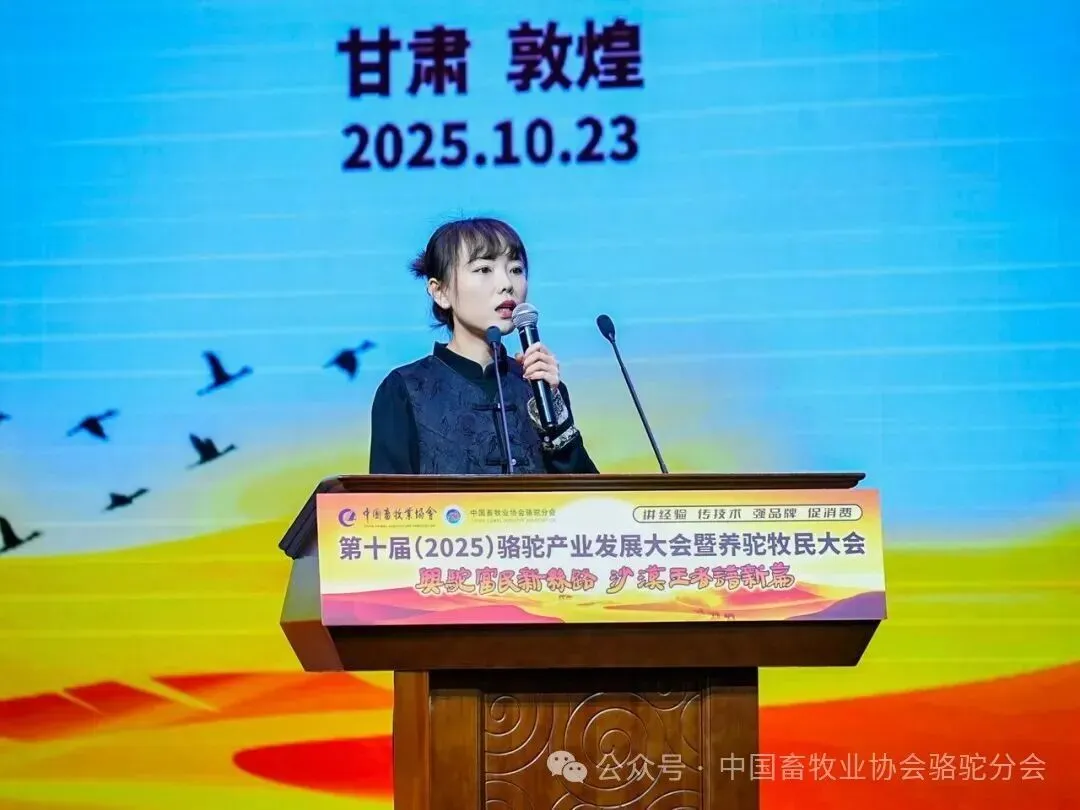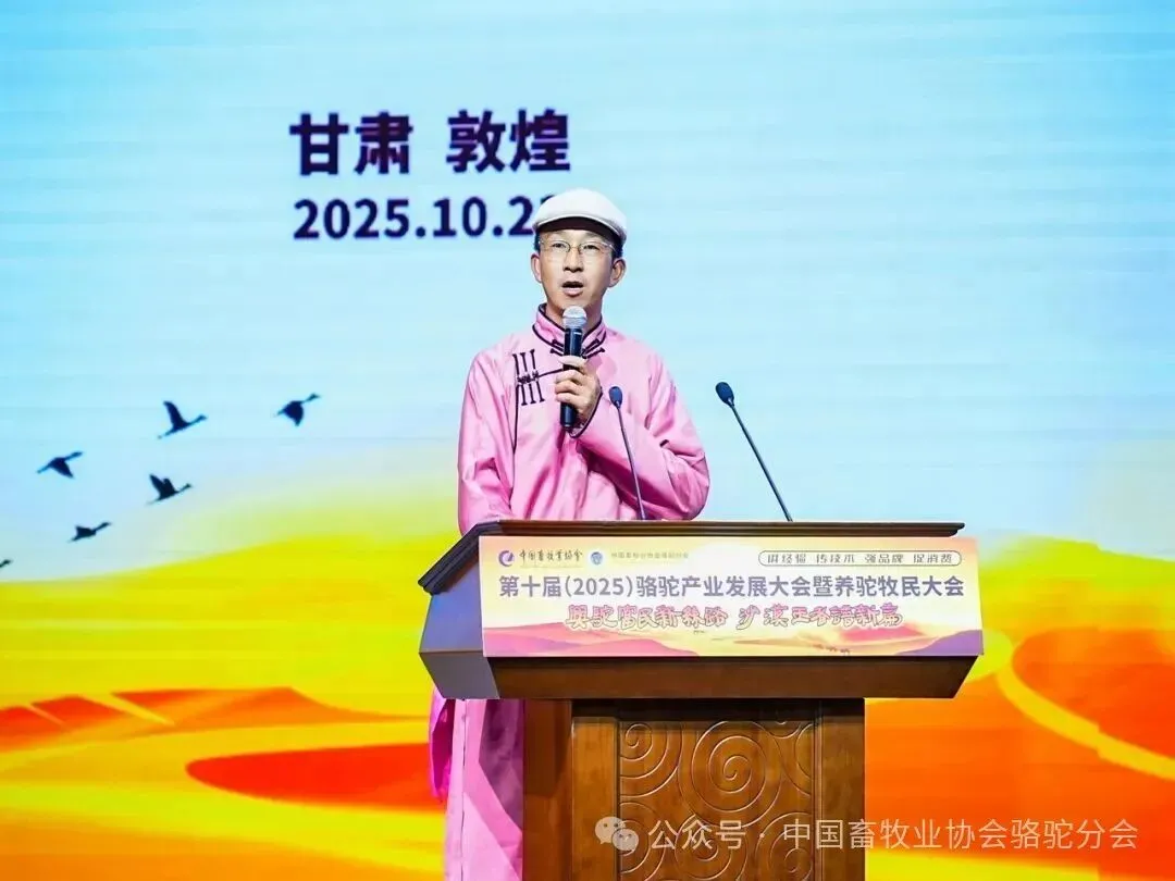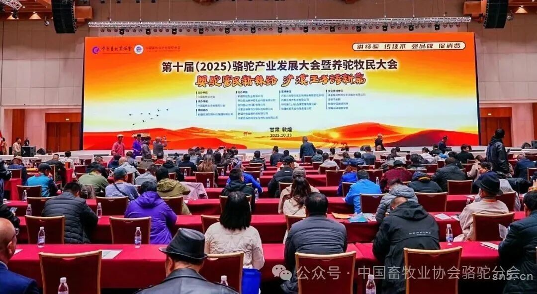 2025年10月23日,第十届(2025)骆驼产业发展大会暨首届全国养驼牧民大会在甘肃敦煌国际会展中心召开。本届大会以“兴驼富民新丝路,沙漠王者谱新篇”为主题,由中国畜牧业协会主办,中国畜牧业协会骆驼分会承办,新疆旺源生物科技集团有限公司特别协办。来自全国骆驼产业界的专家学者、企业家、牧民代表、政府领导及媒体人士共500余人齐聚敦煌,共同探讨骆驼产业的高质量发展路径。