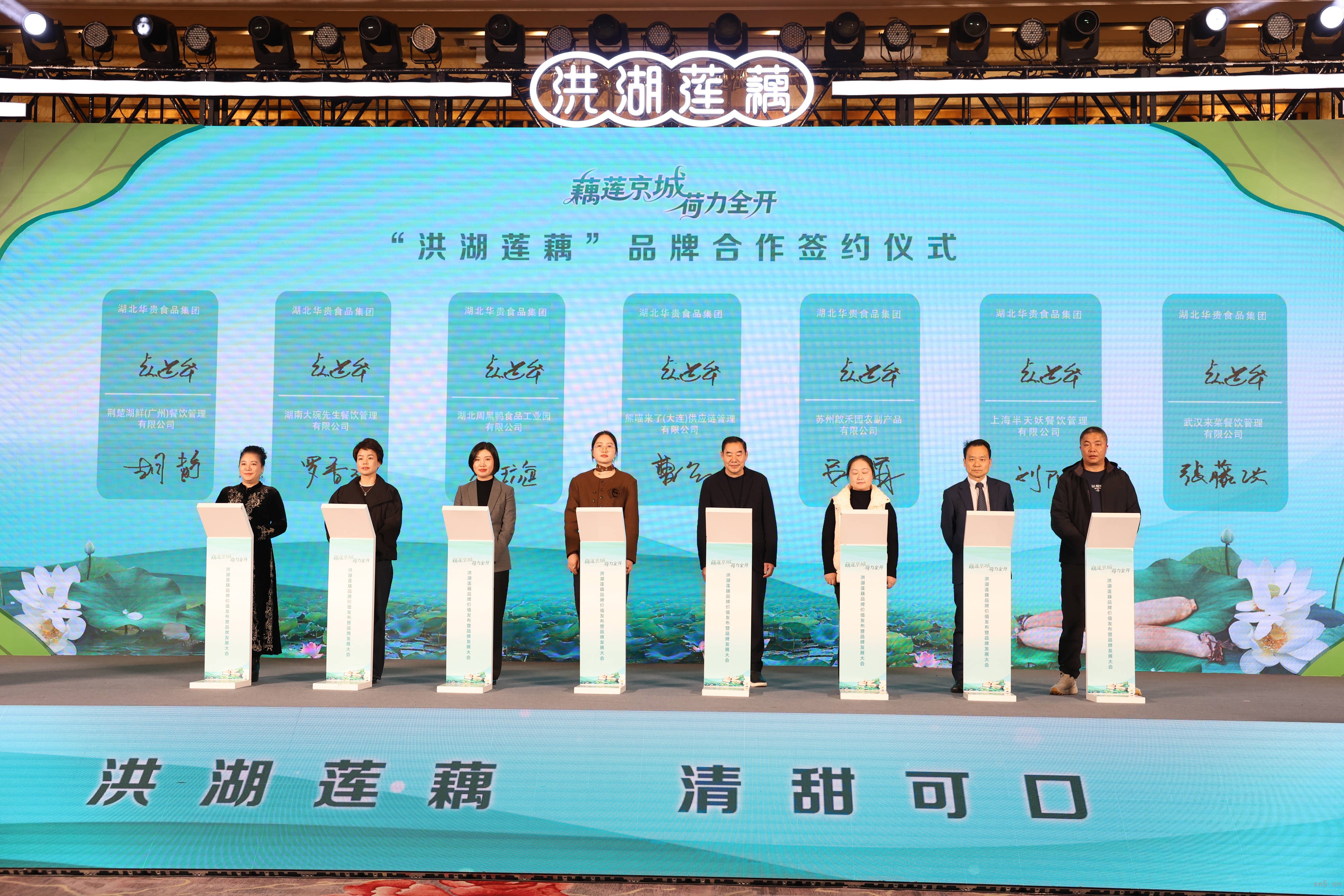 大会现场,主题字画赠予仪式传递着文化传承的温度,而产销对接与招商项目签约环节则彰显了市场活力。在与会嘉宾的见证下,23家企业签约合作。这份合作,是品牌与渠道商的强强联合,也是洪湖莲藕拓展全国市场的重要一步。随着歌伴舞《我在洪湖等你来》的旋律响起,大会落下帷幕,但洪湖莲藕的品牌征程刚刚开启。