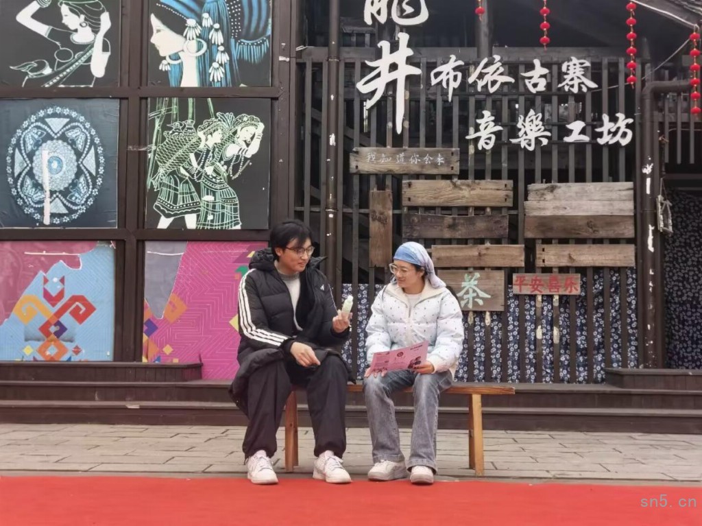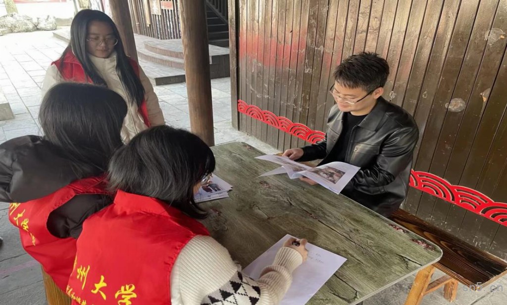 实践活动始于深入细致的田野调查。队员们首站抵达龙井村村委会,了解到该村以“布依情味·百坊龙井”为发展定位,已成功打造包含染坊、银坊、酒坊、簸箕画坊等在内的60余个特色工坊,并通过改造“龙井集市”为当地老人创造了灵活就业的平台。随后,团队深入村巷,在文化长廊与休憩老人促膝长谈,细致记录他们的健康状况与生活习惯。调研期间恰逢村中举办新春民俗活动,打糍粑、写春联、文艺表演等热闹场景,不仅让队员们沉浸式感受到浓郁的乡村年味,更在与老人们的交流中,摸清了他们对乡村就业、精神文化生活的真切期盼。调研也同步揭示了老人们普遍面临的“数字鸿沟”——智能手机使用困难、对电信诈骗辨别力弱等问题,这成为后续行动的关键切入点。