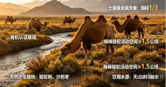 牧场拥有万亩有机认证草场,土壤连续12年未使用化肥与化学农药,经检测,土壤中重金属含量仅为国家标准的1/3。每峰骆驼享有不低于1.5公顷的广阔活动空间,自由采食骆驼刺、沙拐枣等天然沙生植物,饮用源自天山的冰川融水。这种原生态、低密度的散养方式,确保了骆驼的身心健康,也赋予了驼奶纯净、高活性的内在品质。