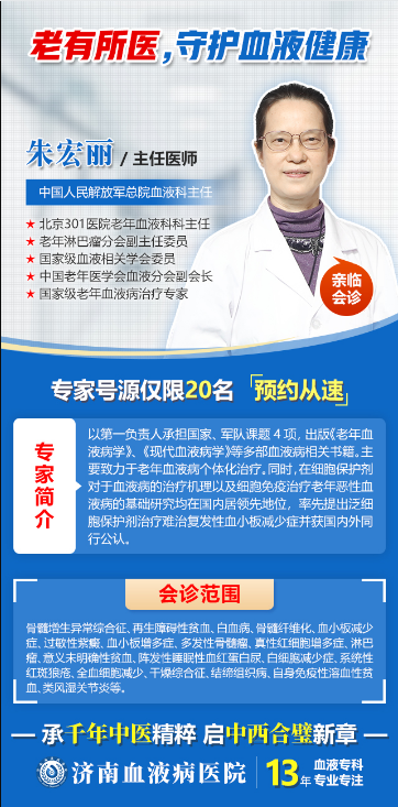 北京301医院朱宏丽教授11月12日亲临济南血液病医院,骨髓增生异常综合征患者速约!