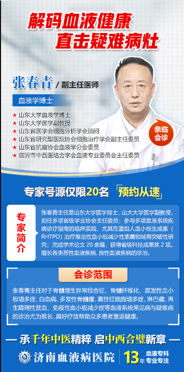山大血液学博士张春青主任11月16日坐诊济南血液病医院,MDS患者速约!