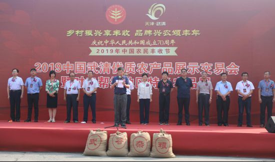 金秋送爽,喜迎丰收,2019年9月9日北京时间上午9点,为庆祝中华人民共和国成立70周年,在2019中国农民丰收节来临之际,2019中国武清优质农产品展示交易会暨对口帮扶地区特色农品展(以下简称:展会),在武清区环渤海农产品交易市场隆重开幕。武清区委书记戴东强,武清区政府副区长曲海富,武清区政府副区长徐继珍,天津市农业农村委总经济师杨青松,天津市农业农村委二级巡视员高雨成,天津市食品集团党委常委、副总经理张庆东,武清区农业农村委党组书记、主任宫汝洲,天津正中农贸市场开发有限公司总经理姜国栋,以及武清区对口帮扶县政府领导、高校专家代表、媒体代表、企业代表、农民代表等参加了此次展会。