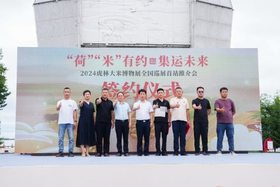 虎林市政府领导隆重推介“虎林大米”这一地域品牌,虎林市文旅局代表重点推介了丰富多彩的虎林旅游风光,随后,活动现场举行乌苏里江稻米博物馆全国巡展首站启动仪式,开启了“荷花四溢稻浪翻 金秋时节庆丰年”—“荷”“米”携手靓丽展示之旅。
