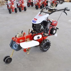 产品简介:功能齐全:多功能田园管理机,全能型,可以实现40多种田间作业,并且各功能国内同行业产品,安装上不同的配件可以开沟、起垄、培