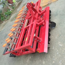 产品简介:该机与拖拉机配套作业,主要用于免耕地单粒精播或双粒精播玉米,可条施晶粒状化肥,一次完成开沟施肥、开种沟、播种、覆土、镇压