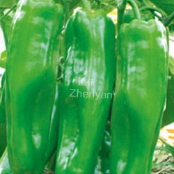 产品简介:特征特性: 高品质、高产量大果黄绿皮尖椒新品种,早中熟,植株生长势稳健,果实粗长牛角型。正常栽培管理条件下,商品果长25