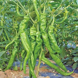 产品简介:品种主要性状: 早熟,杂交一代,果长25-30厘米,**长果可达35厘米,横径1.7厘米左右,椒条顺直,青果浅绿色,抗病、抗逆性强,