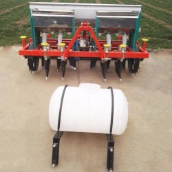 产品简介:这是一款多功能花生播种机,是与12-30拖拉机配套的三点悬挂式花生播种综合作业机械。该机可一次完成起垄、施肥、喷药、覆膜作业