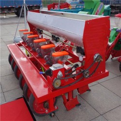 产品简介:六行蒲公英播种机 启航四轮车带动娃娃菜精播机 两垄四行萝卜播种机其原理是:在通过本机排种控制系统对下种数量的精密控制,播种