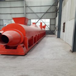 产品简介:转筒烘干机的主体是略带倾斜并回转的圆筒体。工作原理是:湿物料从一端加入,经过圆筒体内螺旋抄板扬起与热风进行有效接触而干燥