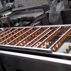 产品简介:关键词:蔬菜清洗机 蔬菜高压水流清洗机是鸿运机械自主研发的新型科技产品,从节能理念出发,根据食品原料特性,配备毛辊,转笼