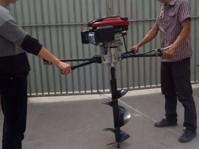 本机器由小型通用汽油机,超越离合器,高减速比传动箱及特殊设计的钻具组成适合于<20度以下的坡地、沙地、硬质土地的植树造林或果树种植,道路两侧绿化植树等。苗木种植挖穴,畜牧围栏埋桩挖穴;葡萄胡椒种植埋桩挖穴;果树、林木施肥挖穴。钻头直径(mm):80 100