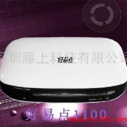 ? 在线点播,采用国际先进的QVOD技术,无需漫长的下载等待,直播选看节目,高清输出,支持1080/720P,做到“全媒体解码”。? 全格式支持,兼容大部分网络常用媒体格式,包括RMVB、WMV、MPEG2/4、AVI、MOV、ASF、MP4、VOB等,电脑能看的节目,好易点都可以看,而且不需经过电脑。?精彩轮播,开机即可进入精彩轮播,每天24小时节目不断,不同时段节目不同,每日更新,是“懒人”一族的新享受。? 内置搜索引擎,互联网海量资源,任你搜索。? 支持USB直播播放功能,私密视频,家庭聚会,任你播放。? 遥控器操作,一机在手,精彩由你。? 时尚外型,小巧精美,装点您的家居。? 外置USB无线WIFI、以太网、拨号上网(PPPOE),家庭常用上网方式全支持。? 好易点支持用户自己配置硬盘,软件自适应,无需要升级,高速 2.5″SATA硬盘,容量无限制。