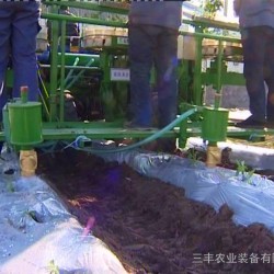 2ZBX-3A型移栽机适用于甜菜、甜叶菊、菊花、玫瑰花、玛卡、蔬菜、玉米等垄上作物的栽植,该机配套40马力以上的拖拉机,具有移栽、镇压、浇水的功能。该机栽植机构(核心件)设计应用曲轴连杆旋转工作原理,在曲轴旋转的同时,鸭嘴通过偏心盘带动上下运动,两者的复合运动与拖拉机的前进运动相复合,从而,实现栽植秧苗的垂直栽植。传动系统为链式传动的方式,确保标准一致。