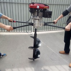 本机器由小型通用汽油机,超越离合器,高减速比传动箱及特殊设计的钻具组成适合于<20度以下的坡地、沙地、硬质土地的植树造林或果树种植,道路两侧绿化植树等。苗木种植挖穴,畜牧围栏埋桩挖穴;葡萄胡椒种植埋桩挖穴;果树、林木施肥挖穴。钻头直径(mm):80 100