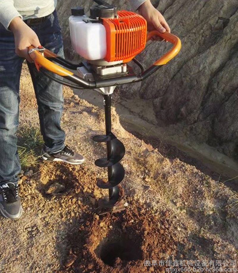 小型挖坑机作业视频 果树园施肥汽油手提螺旋式钻眼机 山地荒山开发种树打坑机
