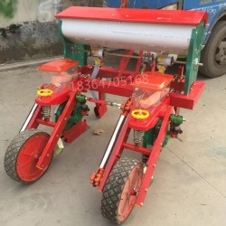 该机与拖拉机配套作业,主要用于免耕地单粒精播或双粒精播玉米,可条施晶粒状化肥,一次完成开沟施肥、开种沟、播种、覆土、镇压等项等工序,两行机添加铺镆机构可以完成地膜覆盖。