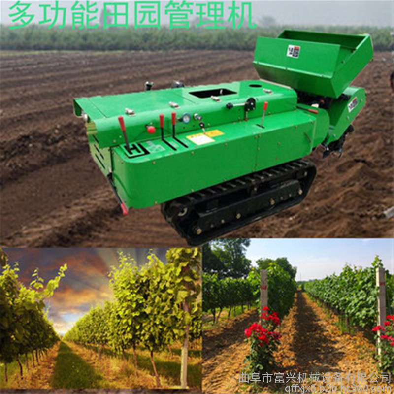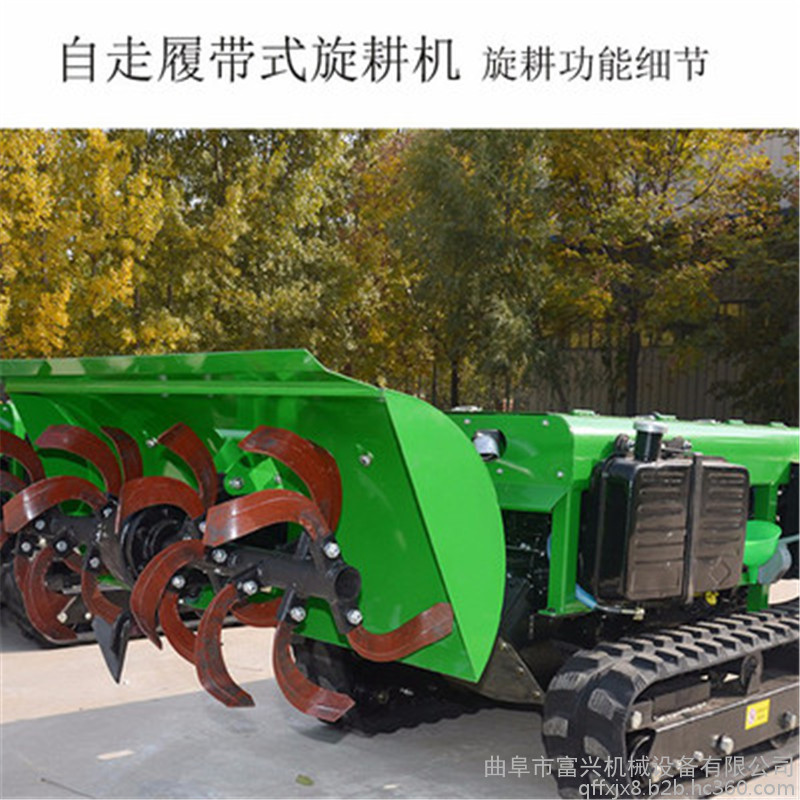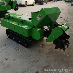 多功能履带式开沟施肥机安装上不同的配件可以进行单独旋耕、回填、单独开沟、施肥、也可混合搭配使用。产品结实耐用,性能优越,操作方便.耐用:机身加厚,密,履带式行走,可进行原地转向。刀具都是加厚75号猛钢锻造,非常耐磨耐用,工作效率高.