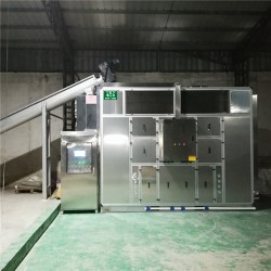 rr 在污泥干化过程中,采用除湿热泵对空气进行加热蒸发以达到污泥蒸发干化,采用热风循环对流,冷凝除湿烘干。利用干燥热空气或者其他介质,污泥中的水分吸收空气中的热量蒸发到空气中,湿泥空气经过冷凝除湿、热回收从而达到干燥节能的目的。利用制冷系统使得湿热空气降温至露点以下析出水分,再经过多次的热回收技术加热空气,使得污泥内的水分一直蒸发,蒸发--除湿--升温--蒸发--再除湿,实际上是等于除湿热泵+热回收技术+物料输送系统的有机结合r