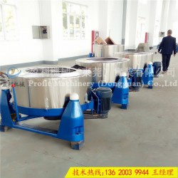 盈利牌离心脱水机采用内筒转动等离心方式,通过内桶高速旋转,将物件所含的水分(油等各种液体)甩出去的脱水(油)设备。此机是我厂引进台湾技术,研制开发成功的高效脱水洗料机,科学设计持久耐用、大大减轻劳动力。本产品适用于各种固液分离、物料离心等