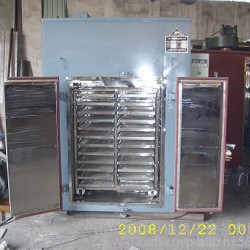 临朐巨能烘干设备制作的药材烘干机、中草药烘干设备等制药机械-穿流式箱式干燥器 产品介绍: 在传统的水平流厢式干燥器中,气流只在物料表面流过,其缺点是传热系数低、热利用率差、物料干燥时间长,且由于结构的缺陷,无法完全符合“GMP”药品生产规范。为了克服以上缺点,我公司根据国外先进技术设计开发了穿流式箱式干燥器。 工作原理:?? 本机由风机将一部分新鲜空气经初、中、高三效过滤,达到十万级净化,经蒸汽热交换器,使空气升温至一定温度,通过过滤器使热空气净化后,再由左侧分流板分至各层,使热风平均通过每层被干燥的物料。湿空气从烘盘底下的倾斜风道抽出后,经离心风机使一部分湿空气排出烘箱,另一部分空气继续循环加热,达到干燥目的。更多>本企业其它产品