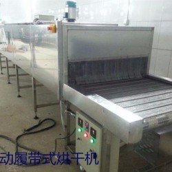 自动履带干燥机原理:物料通过变频螺杆泵送入真空条件下的干燥机内部,物料被连续地涂布在缓缓移动的干燥机内的多条干燥带上,形成薄薄的涂层;干燥带在调速电动机的驱动下以设定的速度向前运动,每条干燥带的下面都有3段独立的加热板和一段冷却板,干燥带与加热板、冷却板紧密接触,以接触传热的方式将干燥所需要的能量传递给带上物料,当干燥物料从筒体的一端运动到另一端时,物料已经干燥并经过冷却,干燥后的物料从干燥带上剥离;物料通过一个粉碎装置粉碎后通过真空蝶阀到料桶中出料。