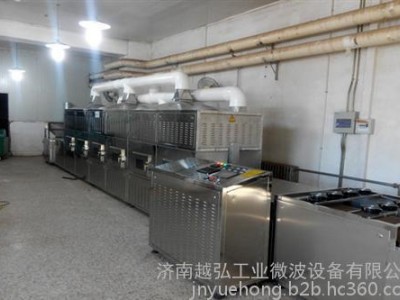 微波杀菌是微波热效应和非热效应共同作用的结果。微波的热效应主要起快速升温杀菌作用、而非热效应则使用微生物体内蛋白质和生理活性物质发生变异,而丧失活力或死亡。因此,微波杀菌温度低于常规方法,一般比较,常规方法杀菌温度要在100-120度以上,时间要在十几分钟至几十分钟,而微波杀菌温度仅在70至90度,时间约为几分钟。例如:豆制品细菌总数6-7万左右,经过微波杀菌以后细菌总数只有6千以下,大肠菌群小于30,时间十五分钟左右达到食品杀菌的要求。2016微波干燥杀菌机销量**供应商-济南越弘工业微波设备有限公司。微波烘干灭菌机、济南越弘隧道式微波干燥杀菌设备。