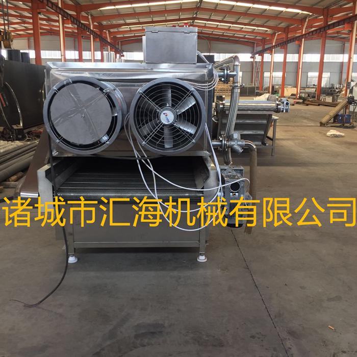 三、诸城市汇海机械三层网带烘干机为适应不同种类物料或不同产量的根茎类加工加工时间,不锈钢网带的运转速度通过变频器可进行无级调速。