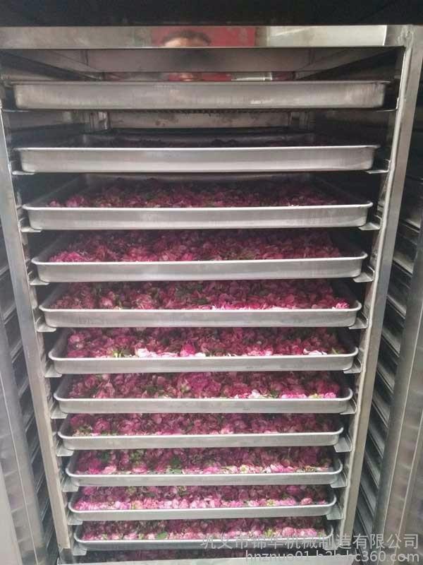 HG型箱式烘干机热源采用电加热,温度控制范围大,温差变化小,非常适用于玫瑰花、金银花、花椒、薄荷、枸杞等农产品的烘干处理,该设备填补了我公司在烘干食品和药材等领域的空白,丰富了我公司产品的适用范围,解决了广大农户对小批量农产品干燥的迫切要求。