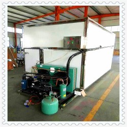 冷风干燥是利用低温低湿空气强制循环于食品间,使之含水量逐渐减少达到干燥的工艺。低温低湿空气在强制循环中不断吸收食品表面水分;达到饱和状态的空气经过蒸发器,由于蒸发器中的制冷剂的蒸发,蒸发器表面温度降到空气露点温度以下,空气经蒸发器后被降温并析出水分,析出水分由集水器排出库体;低温低湿空气再进入冷凝器,由于冷凝器中流动的是来自压缩机的高温气态制冷剂,因此空气被加热形成干空气;然后与饱和状态空气混合生成低温低湿空气反复循环。经冷风干燥机干燥过的物品不仅能保持原有品质,而且更便于包装、贮藏、运输。