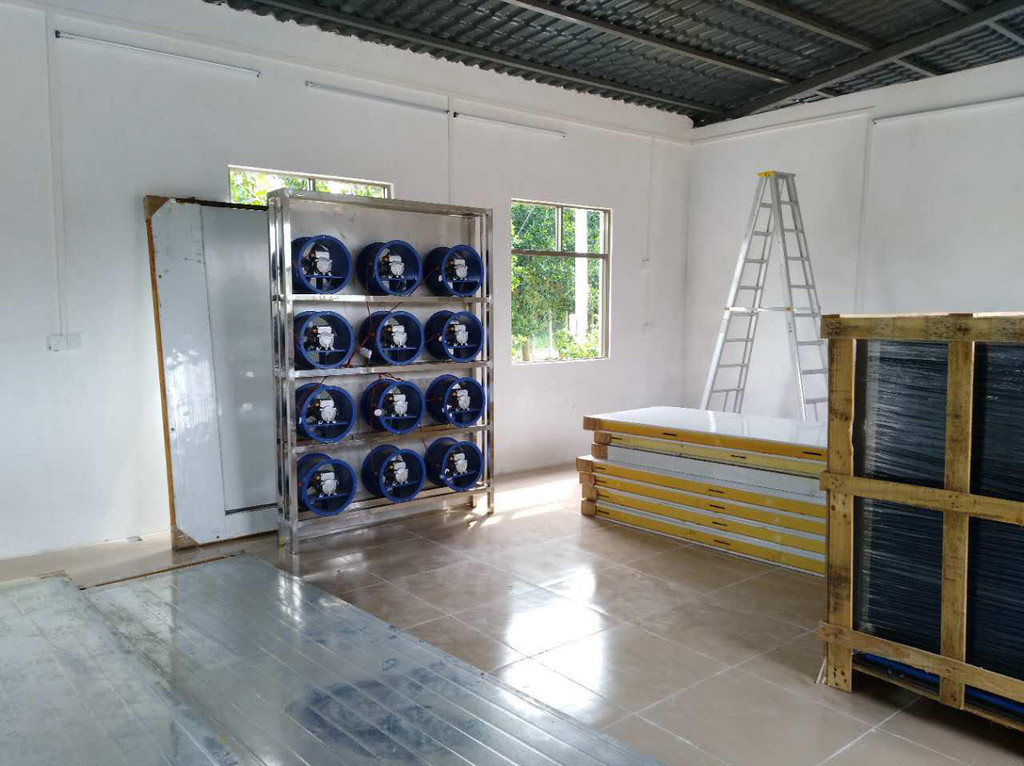 2、 烘干房:聚氨酯发泡保温库房(定制),用来摆放物料,以及保温以免热量散失。