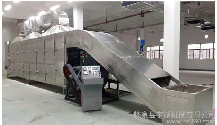 果蔬药材脱水带式干燥机是成批生产用的自动化连续式干燥设备,主要有带式输送机,漂烫机,蔬菜清洗机,自动上料机,干燥主机。燃煤热风炉,传动,控制系统等组成。具有自动进料,自动出料,自动控制的功能,热能用量少,生产效率高,操作简单,维修方便,适用范围广。可自动调温,自动调速,可适用于玉米,大豆,小麦,花生,大米,青梗菜、卷心菜、胡萝卜、黄瓜、南瓜、木薯片、青刀豆、蒜苗、中药材片、山药、枸杞、姜片、大葱、竹笋、芋籽等根茎、茎杆、茎叶类、果品类、槟榔、大枣、葡萄、枸杞、苹果片、猕猴桃片物料等多种蔬菜,药材,苹果类的脱水干燥,是目前脱水蔬菜行业自动化程度较高的干燥设备。对温度不允许高的物料尤为合适;该系列干燥机具有干燥速度快。蒸发强度高。产品质量高的特点。