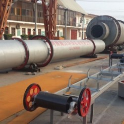 脱硫石膏由供料装置进入烘干机滚筒的内层,实现顺流烘干, 脱硫石膏在内层的抄板下不断抄起、散落呈螺旋行进式实现热交换,物料移动至内层的另一端进入中层,进行逆流烘干,物料在中层不断地被反复扬进,呈进两步退一步的行进方式,物料在中层既充分吸收内层滚筒散发的热量,又吸收中层滚筒的热量,同时又延长了烘干干燥时间,物料在此达到**干燥状态。物料行至中层另一端而落入外层,物料在外层滚筒内呈矩形多回路方式行进,达到烘干效果的物料在热风作用下快速行进排出烘干机滚筒,没有达到烘干效果的湿物料因自重而不能快速行进,物料在此矩形抄板内进行充分干燥,由此达到质量要求,完成烘干过程。
