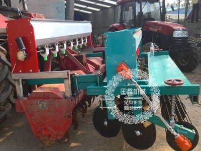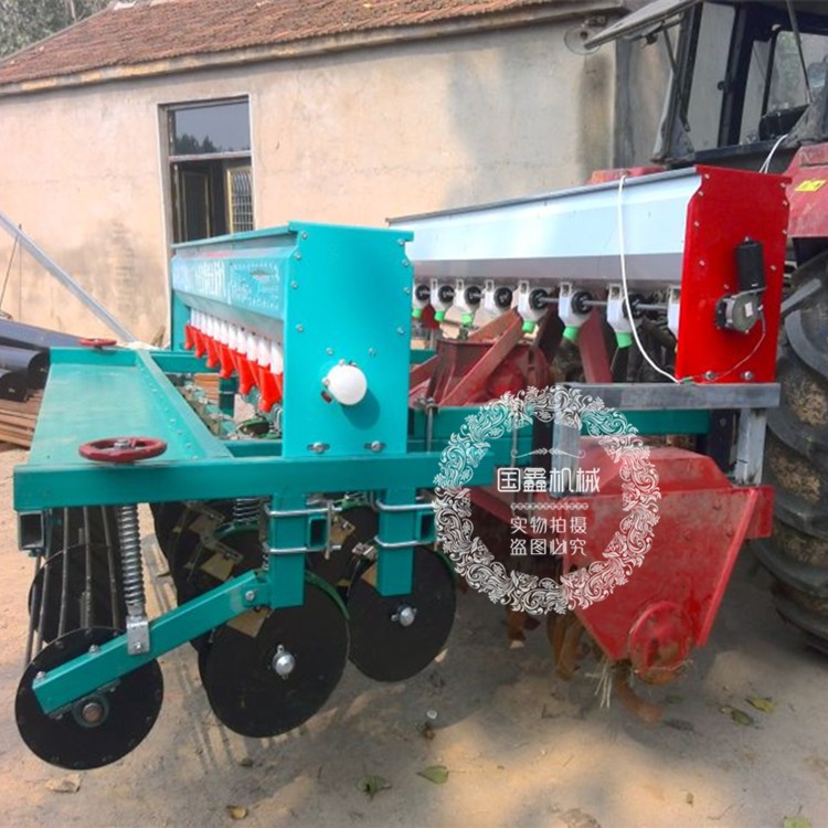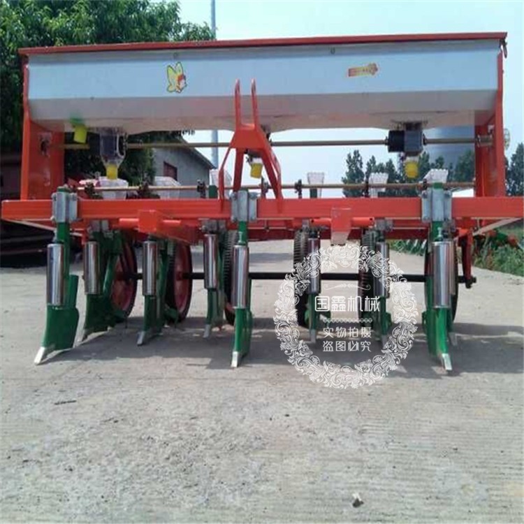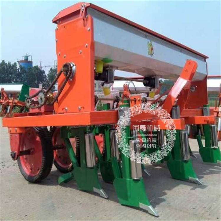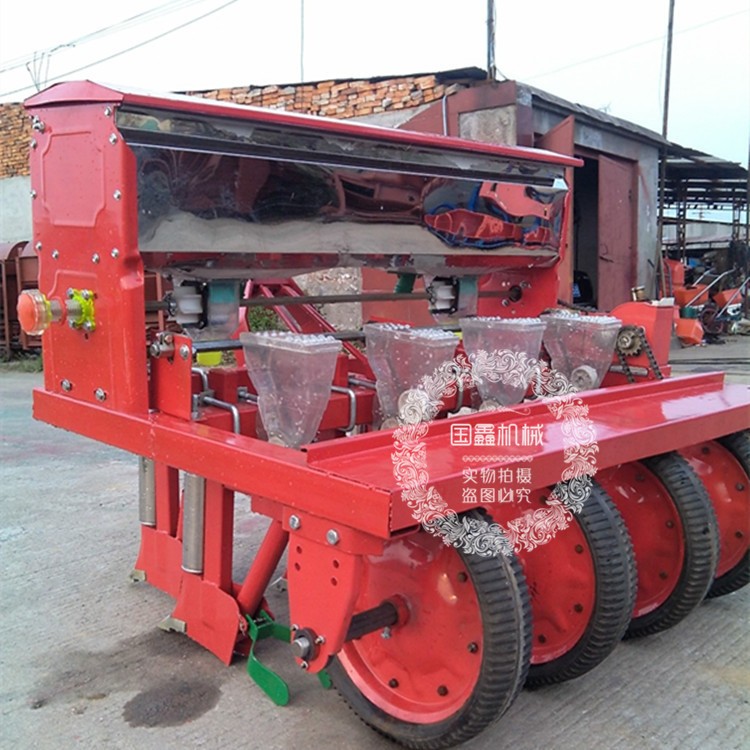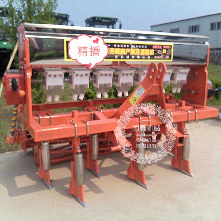 玉米精播机是“曲阜市国鑫农业机械有限公司**研制的一款适合农民朋友使用的多功能播种机,本机器可以播种:花生,大豆,高粱,蚕豆,红豆,绿豆,豌豆;玉米等所有颗粒种子!精播机具有可调节下种量,和精播功能,是他厂没有的先进功能!精播好处有,不缺苗、播种均匀等多种功能!