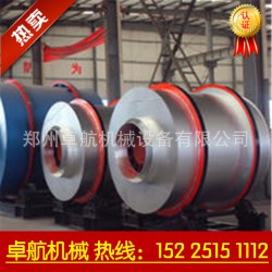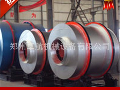 ????????????干燥的湿物料由皮带输送机或斗式提升机送到料斗,然后经料斗的加料机通过加料管道进入加料端。加料管道的斜度要大于物料的自然倾角,以便物料顺利流入干燥器内。干燥器圆筒是一个与水平线略成倾斜的旋转圆筒。物料从较高一端加入,载热体由低端进入,与物料成逆流接触,也有载热体和物料一起并流进入筒体的。随着转筒式烘干机圆筒的转动物料受重力作用运行到较底的一端。湿物料在筒体内向前移动过程中,直接或间接得到了载热体的给热,使湿物料得以干燥,然后在出料端经皮带机或螺旋输送机送出。在筒体内壁上装有抄板,转筒式烘干机的作用是把物料抄起来又撒下,使物料与气流的接触表面增大,以提高干燥速率并促进物料前进。载热体一般分为热空气、烟道气等。载热体经干燥器以后,一般需要旋风除尘器将气体内所带物料捕集下来。如需进一步减少尾气含尘量,还应经过袋式除尘器或湿法除尘器后再放排放。