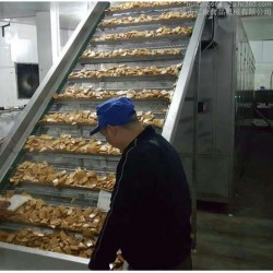 网带式烘干机是利用钢网作为传输带运载物料进行连续烘干的干燥设备,适宜流水作业。由于传输带是网状,所以对烘干规则或不规则各种块状物(如:各种矿粉成型快、食品、蔬菜等)为适宜。本机可以和其他设备配套使用,也可以单独使用。