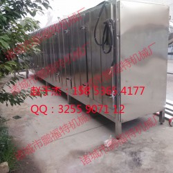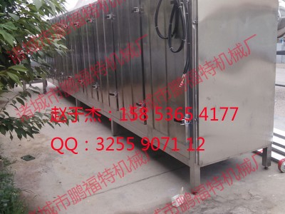本设备工作原理是蒸汽通过热交换器向烘箱提供热源,经过换热器加热的干燥空气在轴流风机的作用下,产生的热风自烘箱尾端进入烘箱内部,经由风刀改变风向,吹向烘箱斜下方,在遇到烘箱内壁时自然分散,形成内循环,使烘箱内部温度均匀,在烘箱内温度达到生产所需时,物料通过提升机均匀分布在烘干机的**层网带,输送网带通过减速机运转,物料从**层逐步到达第五层,从排湿口输出。物料在烘干机中通过的过程中,物料上的水分受热蒸发,由于热空气较冷空气比重小,热空气自然上浮,带走物料所产生的水蒸气,通过烘箱上方的排潮口排出箱体,从而达到物料烘干的目的。根据烘干产品种类的不同,物料水分含量的不同(例如烘干海带、萝卜、肉类等产品),可以适当增加排湿口的数量。本设备可通过调节传送网带的运行速度和烘箱内的温度,调整烘干时间,使物料达到预期的干燥度。