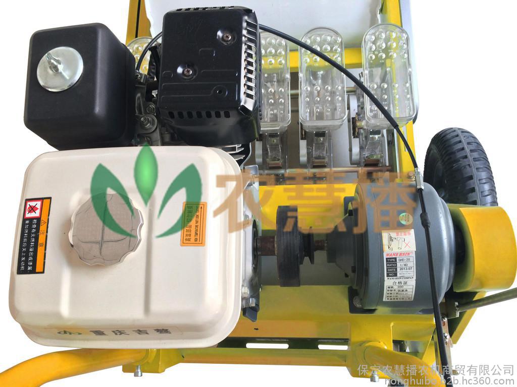 适合中小粒种子,自带动力播种机,适合大面积作业,可在垄上或者平地播种,小粒种子密集性种植效果**,操作简便、转弯灵巧,特殊材料制作播种轮准确落种、落种率**,可拆卸增加、减少行数(组数)。而且拆装简便,方便携带,种子(株距、株距、落种深度、落种数)可调控;开沟,落种,覆土,阵压 一步完成售后机维修: