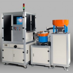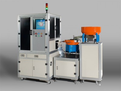 ??本设备主要用于产品的外观、形状、外观尺寸等自动检测,检测项目广泛。例如用于检测紧固件中的螺钉、螺母等标准件或非标件的外观、形状、外观尺寸的自动检测,可检测项目有:头部高度、头部直径、槽型(内六角、十字槽、一字槽等)、深度、螺纹大径、螺纹小径、螺距、螺纹长度、牙型角度、搓牙不良、尾部尖点、有无电镀、槽孔同心度、真圆度、头部裂痕、轧头高度、槽内杂物、槽内瑕疵等等。本设备采用振盘分料,直振送料,并分别把产品送到由伺服电机驱动的玻璃转盘作圆周运动,或由间歇分割器驱动的分度检测盘上作间歇的圆周运动,利用高速工业相机对产品进行视觉检测并自动筛选。设备的检测精度≤0.01mm**检测速度可达:1000件/分钟。