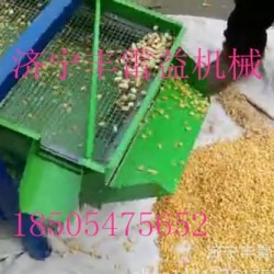 该精选筛为二层筛网,先经过进料口处风机抽风,直接抽走重量轻的杂叶或麦秸秆,上层筛的初次筛分再把大杂清理过,好的粮食(种子)直接落到下层筛网上,下层筛网会把粮食(种子)中的小杂.小石子.有缺陷的粮食(种子)直接漏掉,完好的粮食(种子)会从出料口筛分出来。该小型清粮机解决了扬场机的功能单一,不能有效去除石子.土块的缺陷,更能为清理.净选粮食(种子)带来满意的效果。该机有占地小,移动方便,便以维修,除尘除杂效率明显,能耗低,使用简便等优点。该机的风选功能主要是靠立式空气筛来完成的,它根据种子的空气动力学特性,按照种子和杂质临界速度的不同,通过调整气流的速度,实现分离的目的,较轻的杂质被吸入沉降室集中排出,较好的种子通过空气筛后进入振动筛。振动筛分上下两层筛,设有三种出口,可以分别将大杂、小杂和获选种子排出。