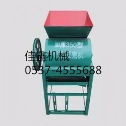 花生种子剥壳机由机架、风扇、转子、单相电机、筛网(有大小2种)、入料斗、震动筛、三角带轮及其传动三角带等组成。机具正常运转后,将花生定量、均匀、连续地投入进料斗,花生在转子的反复打击、摩檫、碰撞作用下破碎,花生粒及破碎的花生壳在转子的旋转风压及打击下,通过一定孔径的筛网(花生**次脱粒用大孔筛网,清选后的小皮果更换成小孔筛网进行第二次剥壳)过滤、分离。花生壳、粒在旋转风扇吹力的作用下,使重量轻的花生壳吹出机体外,重量较重的花生粒则通过震动筛筛选达到清选目的。