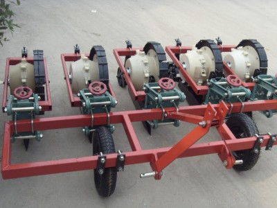 3.本机具有单体仿形功能,播种行数可控。可保证播种深浅一致。单体以播种地轮为支撑方形,播种地轮为排种提供动力,该机的株距调节装置属国内首创,具有设计上的新颖性、技术上的先进性。