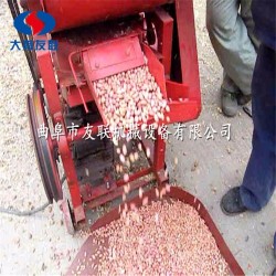 花生粒及破碎的花生壳在转子的旋转风压及打击下,通过一定孔径的筛网(花生**次脱粒用大孔筛网,清选后的小皮果更换成小孔筛网进行第二次脱壳),这时,花生壳、粒受到旋转风扇的吹力作用,重量轻的花生壳被吹出机体外,花生粒通过震动筛的筛选达到清选的目的。