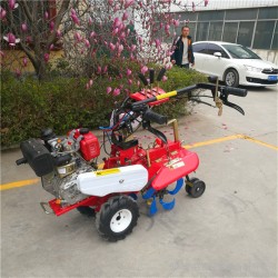 微型耕耘机,体积小,重量轻,轮距可根据作业环境随意调节,配备动力大,扶手把可以360度旋转,操作灵活可靠。本产品特别适用于温室、大棚、菜地、果园、山区、丘陵等不同地域的旋耕、犁耕、除草、播种、中耕施肥、植保喷药、灌溉等多种耕作田地的要求,以及在棉花、玉米、葡萄、苗木等经济作物的中耕、除草作业更能发挥其独到之处。